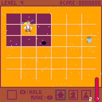 -Rusty (blue square) to hold a piece.